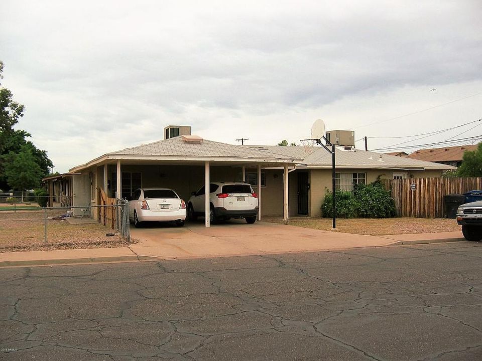 Great investment opportunity near Downtown Mesa. Duplex with 2 bed 1 bath units just 900 feet from the Light Rail & Red Bus line. ALL UTILITIES PAID BY TENANT. Each unit has a large fenced yard and a storage room. Both tenants are long term. Ceiling fans in every room, gas ranges, washer dryer hookups. The seller owns one set of washer/dryers and a tenant the other set. Nice set up for an owner/occupant in one unit. DRIVE BY ONLY, PLEASE DO NOT DISTURB THE TENANTS!