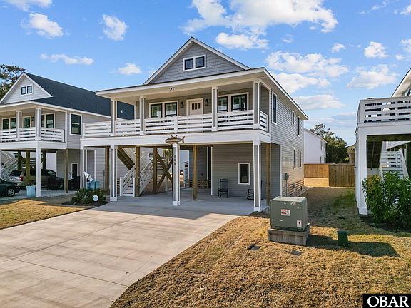 Gorgeous sunset and sound views from this better than new 3 bedroom 3 bath Kill Devil Hills charmer! This house is stunning and comes fully furnished featuring a great floorplan with a full guest suite downstairs! There is an additional living area downstairs as well making this the perfect home for vacation, year round living or investment! The beautiful kitchen features quartz counters, craftsman style cabinetry and new stainless appliances. The Bay drive multi-use path is just outside the door with easy access to Hayman park, Dock street boat ramp, and great dining and shopping. This home has been meticulously maintained with many additions to include all carpet removed and hardwood steps installed, LVP throughout bedrooms, glass shower doors in both master and downstairs bath, elegant plantation shutters throughout, custom wrapped front pilings, sealed decking and wonderful landscaping. Imagine enjoying a drink on the large front porch enjoying the beautiful sunset views over the sound in this great Outer banks home!