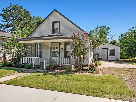 This charming & completely remodeled Edmond bungalow provides instant curb appeal w/a quaint walk up front covered porch. Conveniently located in Central Edmond, nearby Edmond Schools, Univ of Central OK (UCO), restaurants & shopping. The entire home was sheet rocked after insulation was installed in the exterior walls. The home was re-wired & re-plumbed then inspected & approved by The City of Edmond. A remodel permit was obtained from the City of Edmond so all structural changes were inspected & approved. Features include the following: outside covered front porch, spacious backyard w/storage shed, Laminate Wood Floors in the Living Area and both Bedrooms, Kitchen has refrigerator, gas range, replaced cabinets & counter tops and opens to the Living Area, Bathroom remodel w/replaced sink, counter & cabinets, tub, toilet, floors. Laundry Rm is separate, has shelving & is very large. Attached enclosed garage has lighting and could be an artists studio, workshop space, etc. New roof, including roof decking, and all new gutters, flashing, and additional vents added 2019.