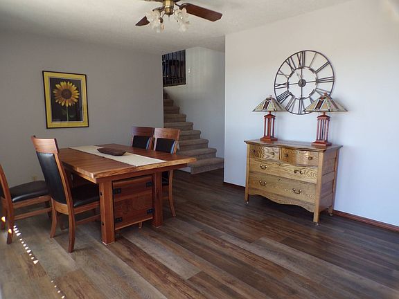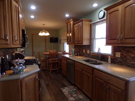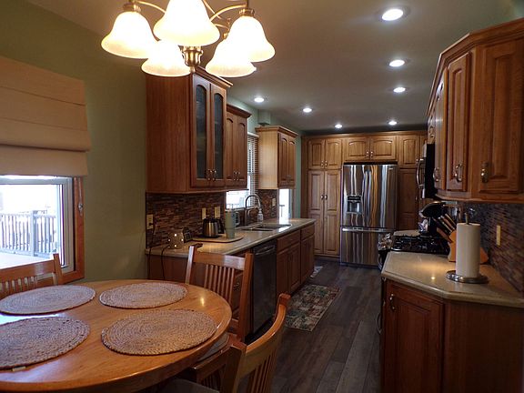 This well taken care of home has been updated in all the right places!! The kitchen underwent a full remodel in 2013 adding lots of hickory cabinets, updated counter tops and backsplash, new appliances and not one - but TWO pantry cabinets. Three bedrooms with large windows for natural light. Bonus room above the garage has a large family room, great views and built in bar with fridge and sink. The unfinished basement has tons of storage or potential for other ideas. Laundry is in the basement. Front porch and back deck have composite decking for maintenance free care. Beautiful views from all sides! Back deck is covered and has pull down sun shades. Extra....and I mean EXTRA large yard. Well established trees, bushes and garden. New shed was added in 2022. If you have been looking for a great home on the edge of town yet close to amenities, this is it. Call Brenda for a private showing.