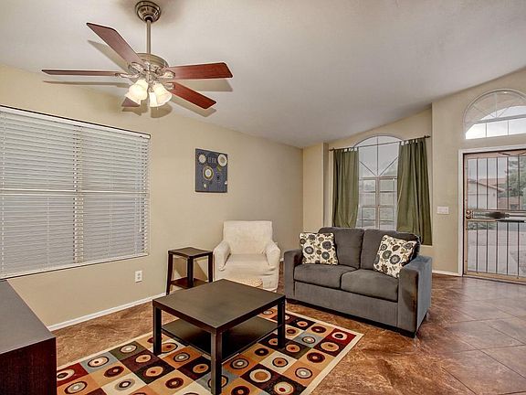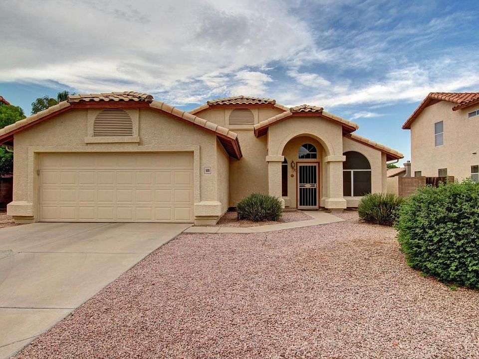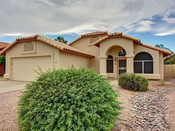 Amazing Mesa home with vaulted ceilings, designer paint, and a handsome brick fireplace! Whip up a culinary delight in the eat in kitchen that boasts stainless steel appliances, a plethora of cabinets, granite counters, and a center island with breakfast bar. 4 spacious bedrooms have beautiful wood laminate flooring. Master includes a private exit, walk in closet and adjoining bath with a tile surround shower and dual sink vanity. Generous backyard is complete with a covered patio and low care landscape! This home is ready for your personal touches!