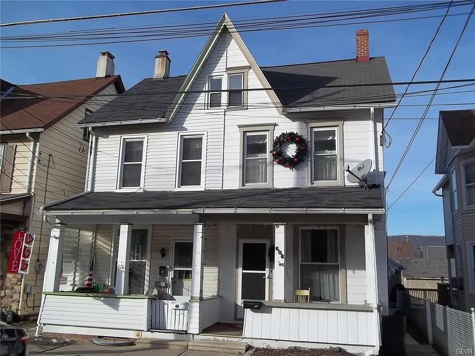 Well maintained twin with detached 1 car garage. Newer carpet in living room, dining room & stairs/hallway. First floor laundry/powder room off kitchen. Kitchen has tile back splash. Updated bath with claw foot tub on 2nd floor. Back bedroom has balcony. Walk up attic great for storage or future expansion. Newer windows throughout. Not much of anything to do but move in and enjoy!