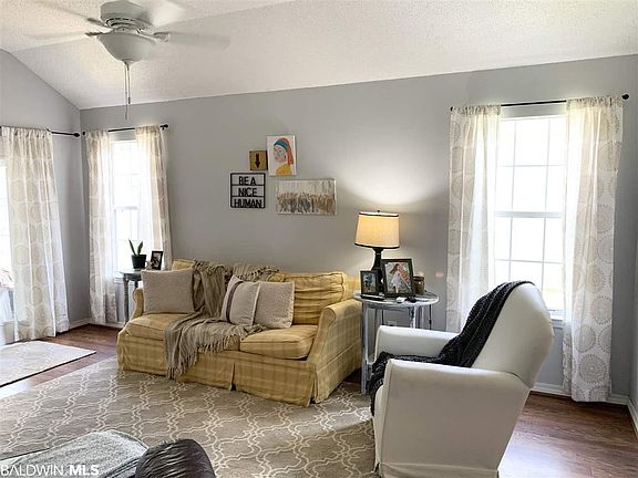 Charming 3 bedroom 2 bathroom home located in the Belle Chase subdivison of Fairhope. High ceilings in the living room featuring a fireplace and french doors to the 13X13 Sunroom that is heated and cooled, the perfect area to enjoy company all year. Big master bedroom featuring high ceilings with french doors to the master bathroom. Cozy home with plenty of natural light. Fenced yard and storage building.