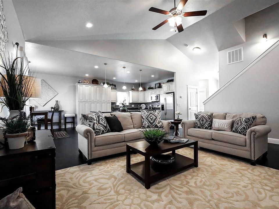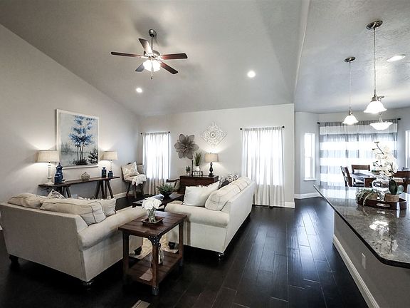 Oxford Executive. Includes bonus room (4th bedroom) with en suite bathroom. Split bedroom floor plan with open great room. Large kitchen with 8' island and an abundance of pantry space. Beautiful view of the Ruby Mountains. Free upgrades include: covered back patio, fireplace, hardwood in great room, pendant lighting, and premium cabinets throughout. Photos are of similar model.