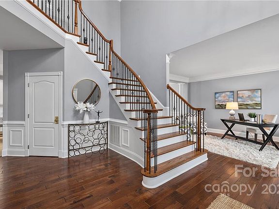 Lovely one owner full brick & stone home on .70 ac flat, fenced and tree-lined lot. Sparkling In-Ground 42x21 Gunite Saltwater Pool w/deep end. Quiet cul-de-sac. Prestigious Marvin Creek Nbhood & Highly rated schools. Immaculate Condition, Fresh Neutral Paint, updated lighting. Stunning 2 Story Foyer with Grand Staircase, Formal Living & Dining Rm, BR / Office w/ Full BA on Main, spacious Family Rm w/gas Fp, second staircase to upper level. Updated & open Kit w/ painted cabinets, quartz countertop and island w/new tile backsplash, new sink, faucet + disposal. Huge Vaulted Screened Porch overlooks pool & patio. Second flr w/Huge Loft, Primary Suite features 3 Walk-in Closets*, Pvt BA w/whirlpool tub and sep shower. Sizable secondary BR's. Third flr Bonus/BR w/Full BA and large Media/Theater rm w/Surr Sound. Bonus! Screen and Projector to remain. 3 Car, Side Load Gar w/custom storage loft. Walk-in attic. Irr. Tons of extras! Fantastic loc nearby shopping, dining & easy access to I-485