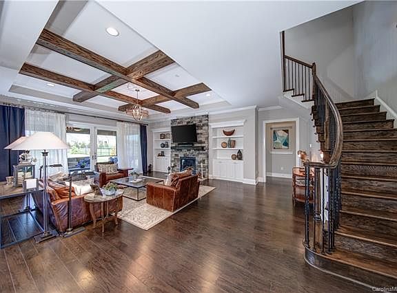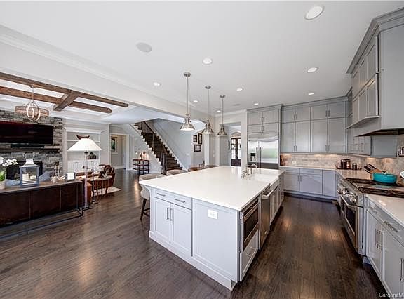 Atherton... 4-Car Garage, .94 Acres, Full Brick, 5 Bedroom, 4.5 Bath Home. Top Rated Schools. Sought-After Grayson Floorplan. Main Level offers Master Suite +Guest Suite+Office w/Custom Built-Ins! Upstairs has the Extra Bonus Room+Loft+Rec Room w/Custom Built-Ins. Gourmet Chef's Kitchen w/Quartz Countertops, SS 48" Pro Range w/Double Ovens +Wall-Mounted Pot Filler, Built-In SS 42" Refrigerator +Wine/Beverage Fridge in Breakfast Area Built-Ins, Enormous Island w/Built-In Microwave & Counter Height Seating! Entertaining is a Breeze with Kitchen open to Spectacular Family Room w/Coffered Beam Ceiling & Stone Fireplace w/Built-Ins. Sliding Doors provide Backyard Views & completely open the Great Room to the Screen Porch. Step onto the custom Travertine Marble Terrace + Patio from Kitchen or Porch for Grilling & Entertaining. Drop-Zone w/Built-In Storage/Seating conveniently located between Garage & Laundry Center. Low Union Co Taxes. Enjoy neighborhood Pool, Cabana, Playground & Fireplace!