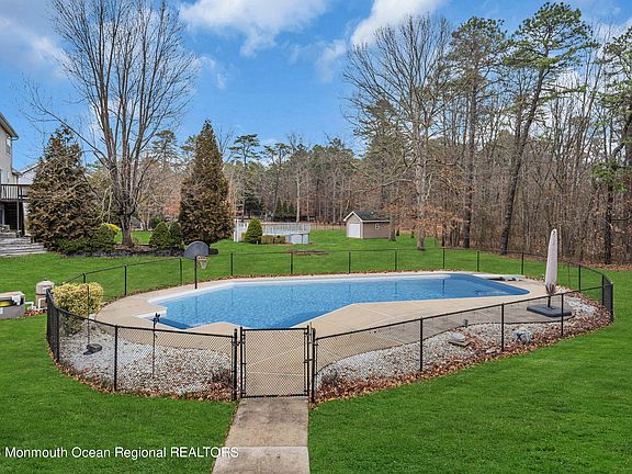 Welcome to this beautiful 5 bedroom, 3 full bathroom colonial on 1.29 acres located in Jackson Township. As you enter the two story foyer, you will be greeted by a spacious living room and dining area filled with natural light. Down the hall to the expansive kitchen with a center island perfect for entertaining. The main floor also includes a cozy family room with a fireplace and a bedroom that can be used as an office or den. Full bathroom, laundry room and 2 car garage. Upstairs, you will find 4 additional bedrooms, including a large master suite with a walk-in closet and fully updated ensuite bathroom with soaking tub. The finished basement offers additional living space and storage with endless possibilities. Continue outside to the raised deck with access to your backyard oasis, complete with an inground pool, perfect for enjoying those warm summer days. Enjoy the neighborhood while having easy access to major highways including 195 & the NJ Turnpike. Short drive to shopping, Jackson Outlets, dining, Six Flags, Jackson Crossing USA and Jersey Shore beaches. Don't miss out on this incredible home!