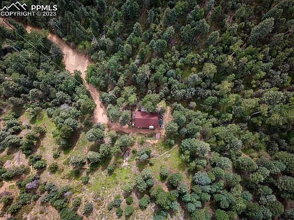 This incredible home is located in the gated community of Crystal Park, a recreational neighborhood. Take advantage of this amazing opportunity to live in the privacy of the mountains with only a 20 minute drive to downtown Manitou Springs! This serene home is at the end of the cul-de-sac backing up to Pike National Forest. A tranquil stream flows through the property with a couple of gentle waterfalls. Take in the calming sound of the stream and nature to help de-stress from those busy days. Enjoy the beautiful setting while sitting on your wraparound porch or on the bench near the stream. Take it easy lying in the hammock listening to the birds and the breeze rustling through the aspen leaves. This gorgeous home features elegant wood paneling and an impressive 21-foot beamed ceiling. There is also a wood-burning fireplace with a natural rock surround as a focal point of the great room. The updated kitchen and bathroom feature granite countertops and ceramic tile in the shower and floors. The large stone kitchen peninsula has room underneath for barstools for cozy breakfasts at the counter. Multiple sliding glass doors and large windows allow in ample natural light and connect you to the beautiful forest just outside. The spacious upper bedroom has a large walk-in closet and access to its own private balcony, as well as excellent views. The lower bedroom has a large closet as well for additional storage. Explore the neighborhood driving around on the ATV! The neighborhood features plenty of hiking trails, as well as a stocked fishing lake, pickle ball/tennis courts, and a heated swimming pool by the clubhouse. Several large waterfalls throughout the neighborhood can be accessed via the trail system. Please note that HOA covenants prohibit short-term rentals of less than 6 months.