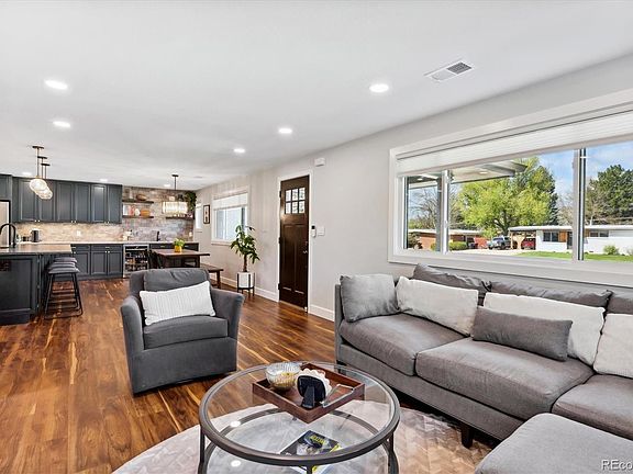 Welcome home to this fully renovated 4-bed, 3-bath ranch style home. Bike, Walk or Run! Large corner lot, over 16k sq ft, & only 6 blocks to Old Towne Arvada (Fuzzy Tacos, Smokin' Fins, School House Kitchen, Home Grown Tap & Dough)This home offers the perfect blend of modern luxury & convenience. Upon entering the home, you'll be immediately struck by the attention to detail & high-end finishes throughout. Much of the main level features beautiful Luxury Vinyl Plank Flooring, custom lighting, & plenty of windows that bathe the space in natural light. You will love the cozy gas fireplace for those cooler Colorado days. The open-concept design seamlessly flows into the top-of-the-line kitchen, which features high-end stainless steel appliances including a gas cooktop, leathered quartzite & granite countertops, & an oversized center island w/ bar seating. You will love the additional coffee bar w/ beverage fridge. The primary bedroom suite offers a luxurious retreat, complete w/a walk-in closet & a spa-like en-suite bathroom featuring a double vanity, oversized shower & soaking tub. 2 additional bedrooms are perfect for family or guests, & a full bath completes the main level of the home. Downstairs, the finished basement offers lots of flexibility. Enjoy unwinding at the end of the day in the 2nd Family Room. Bonus room could be used as an additional non-conforming bedroom or study. 4th bdrm w/ conforming window. 3/4 bath. Plenty of storage space to keep your home organized & clutter-free. Outside, the large private backyard is the perfect place to relax and entertain guests. Surrounded by mature trees & lush landscaping, you'll enjoy a peaceful oasis just steps from your front door. The home also includes a spacious two-car garage, large deck & a large laundry area. Amazing location just minutes from everywhere, this home offers easy access to shopping, dining, & entertainment options. This is a rare opportunity to own a fully renovated home in a prime location.
