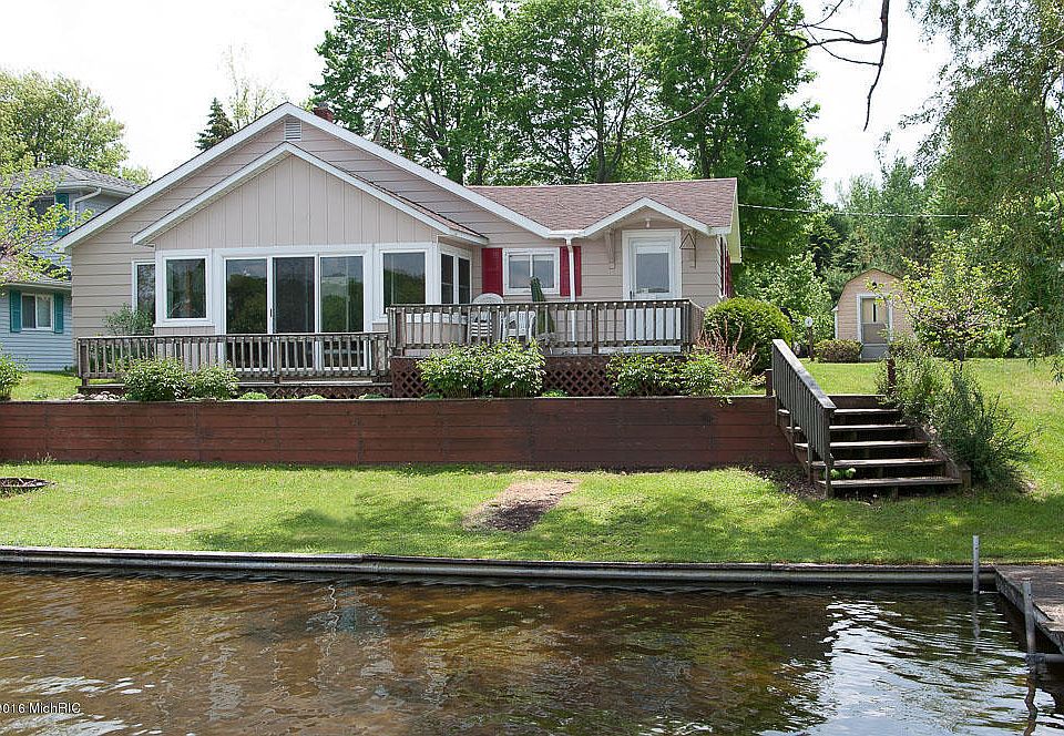 Well kept 3 bed/2 bath on with 66' of beautiful frontage on Townline Lake, an all sports lake. Enjoy watching the wildlife while relaxing on your deck overlooking the lake. Seawall frontage and large dock to tie your boat to or fish from. Open, airy floor-plan and large rooms. 28x32' pole barn makes for lots of storage for your outdoor toys, also perfect for parking your vehicles in. Beautifully landscaped, nice manicured lawn is perfect to entertain guests or enjoy an outdoor barbecue and an ev ening bon-fire. Michigan basement, storage shed, and natural gas. Many updates including roof, flooring, garage doors, and furnace. Lovely 3-season sun-room out the back overlooking the lake with a great panoramic view. Perfect home for year-round living or your summer retreat cottage.