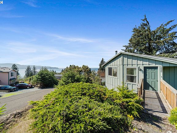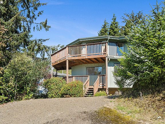 Charming carousel home with views of Tillamook Bay! With 2-bedrooms & 1.5-bathrooms, this one-of-a-kind home is located on a corner lot, nestled amidst lush greenery and boasting panoramic views. Upstairs you will find an open-concept living space that seamlessly blends the living room, kitchen, and dining area, creating the perfect space for gatherings. The vaulted ceilings and large windows maximize the natural light and showcase a beautiful view from every window. Downstairs has 2 bedrooms, a full bathroom, and a versatile office/den that can easily adapt to suit your needs. Cozy up by the wood stove or relax on either of the two decks, you are sure to find this home to be the ideal coastal retreat!