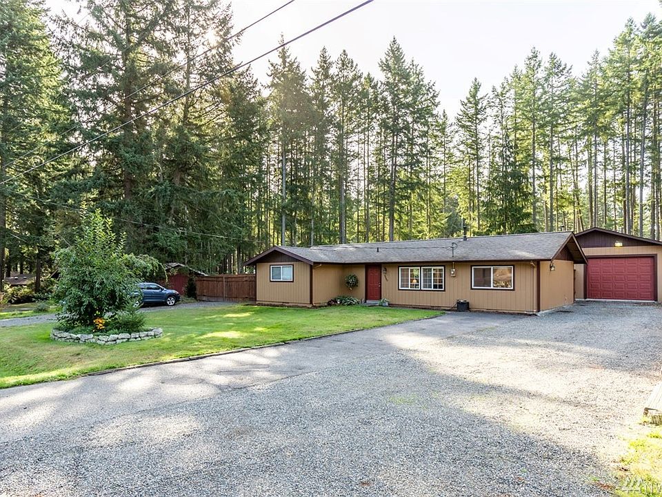 Exceptional 3BD 1.75BA Rambler on impeccable 1/2 shy acre. Large detached garage w/doors on each end. Lovely home updated w/gourmet kitchen, stainless package, granite counters, soft close wood cabinets. Open floor plan, 2 dining options, formal living & family room. Utility has new washer & dryer. Covered Patio overlooks beautiful grounds and fun fire pit is near out building. Minutes to Gig Harbor, Port Orchard & Beaches. 2 driveways on either side of house give access to huge fenced backyard.