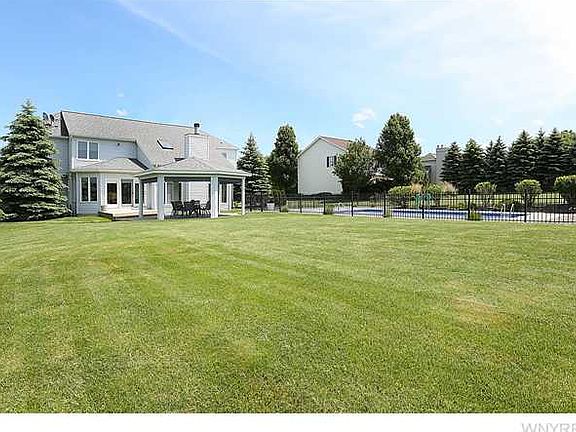 Exceptional custom-built 4-bedroom colonial/contemporary on 1.06 acres, beautifully maintained & updated. Fabulous open-plan living space includes updated kitchen w/granite counter-tops, breakfast room opening via glass doors to the back yard, living room with cathedral ceilings, skylights, ceiling fan & gas fireplace, & music/reading alcove. Formal dining room & family room/den complete the 1st floor living space. Master bedroom suite has large bathroom w/Jacuzzi tub & walk-in closet. 1st floor laundry. Concrete patio with gazebo overlook the heated 18'x36' in-ground pool. Near bike path.
