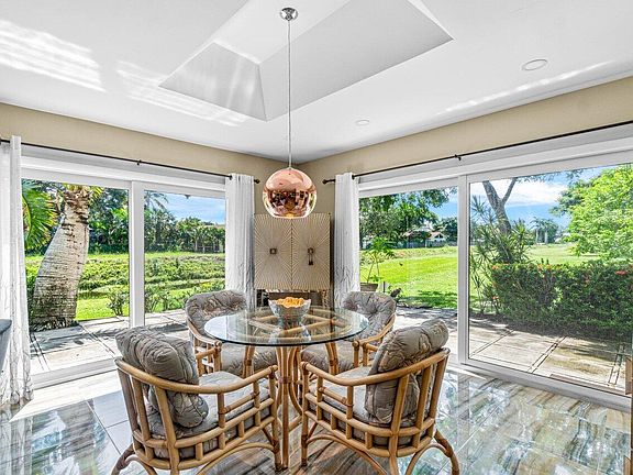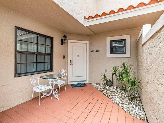 Amazing 2/2 in the heart of Boca on a corner lot overlooking a lake and canal. This serene unit boasts marble flooring, updated baths, split bedrooms, impact windows, wrap around patio & 1 car garage plus assigned parking. Walk to Town Center, Restaurants, Racquet & Swim Club and more. Community has Pool, Spa & BBQ. Exclude Lighting fixtures & Fans.