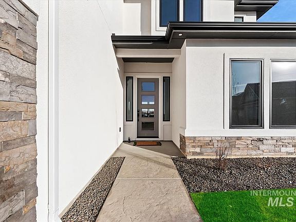 This stunning home called the Borealis complete with an RV bay has a stucco exterior accented by dry stacked stone and sleek black framed windows delivering undeniable curb appeal. Inside, hardwood floors enrich the main living areas, complemented by built in cabinetry and a striking fireplace with floor to ceiling stonework, all illuminated by abundant natural light. The open concept design flows effortlessly, offering versatile work from home office and a luxurious main level master suite a private retreat of comfort and sophistication. The upper level features a spacious bonus room and 3 generously sized bedrooms, including a private ensuite ideal for hosting guests or creating the perfect secondary office. Step outdoors to a large covered patio and a beautifully sized backyard perfect for entertaining, relaxing or embracing nature. Enjoy added privacy with no rear neighbors and take in the breathtaking views of the mountains - a serene backdrop for your outdoor living experience. Photos are of actual home
