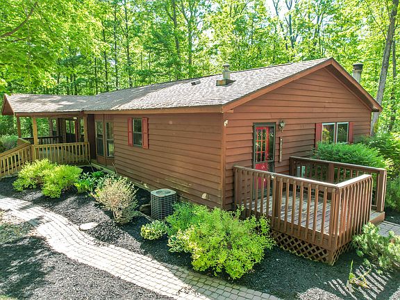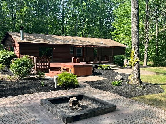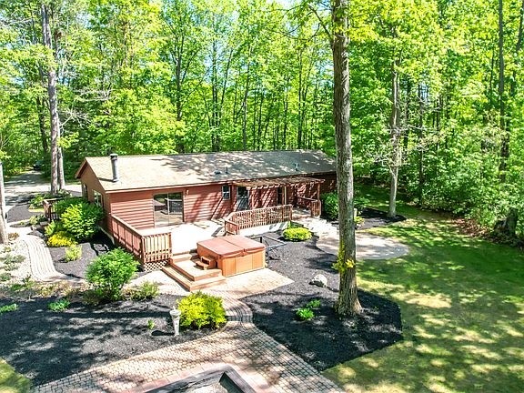 Home and two large garages on 10 acres full of mature hardwoods. The property is quarter mile from the ATV/snow mobile trails and across the road from a Patriot Golf Course (Formally Fox Run). The acreage consist of gorgeous hardwoods with abundant wildlife includes white-tail, turkeys, tons of game birds. Property is close to the new Kirtland black-top trail. Interior of the home features large kitchen including double oven, and newer stainless-steel appliances, natural wood fireplace and a large master en-suite. Both bathrooms have been renovated in 2023. Extensive landscape, freshly stained covered front porch and large back deck with hot tub to take in nature and the serenity. Home is 25 minutes from Gaylord, 75 minutes from TC and 5 minutes from downtown Grayling.