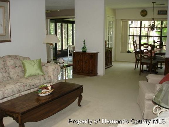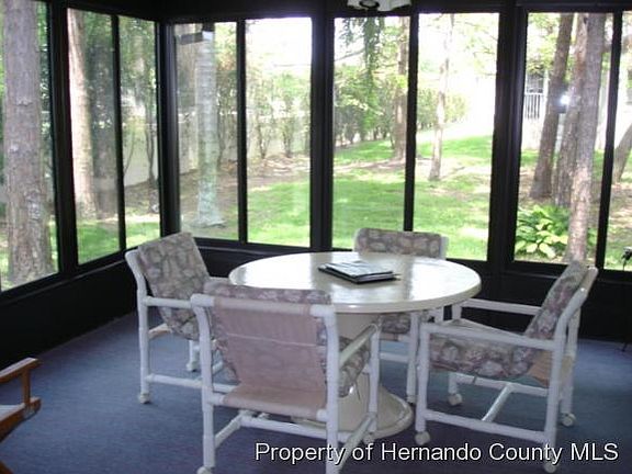 Repaired Sinkhole: Beautiful, 2 bed,2 bath villa in superior condition,with almost all furnishings included. Located in highly rated Timber Pines,a 55+ community. Villa has upgraded stainless steel kitchen appliances, added glassed in sun room, separate dining rm, living rm plus tv rm. Home features large walk-in closets, tile and carpeted flooring and a 1.5 car attached garage. T/P offers swimming pools,4 golf courses,tennis courts, bocce ball courts ,Country Club restaurant, Performing Arts Center and more. Twenty four hour gated patrolled security. Come live the dream life. Golf cart included "as is"