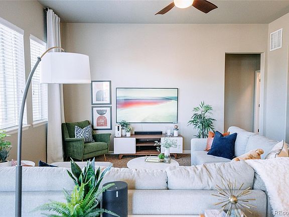 Step into the comfort of this spacious ranch-style home nestled in the vibrant High Point DIA neighborhood, perfect for those who love to host and entertain. Its expansive open layout harmoniously connects a generous kitchen—boasting new high end stainless steel appliances—to a cozy dining nook and a beautifully kept backyard. Bask in the abundance of natural light streaming through the lofty windows across the living spaces and bedrooms. The kitchen, featuring upgraded light fixtures with a central island, invites casual dining and socializing. Retreat to the serene owner's suite, complete with a large dual-sink vanity, walk-in shower and new custom built walk-in closet. Imagine the possibilities with the vast unfinished basement: a new bedroom, an extra bathroom plus a large entertainment area. Additional storage needs are effortlessly met with the accessible basement crawl space. This incredible home also offers the added convenience of being close to the neighborhood park and pool, perfect for outdoor activities and relaxation. Plus, you'll have easy access to public transportation, as well as being just a short distance from DIA and downtown Denver. It's the ideal location for those seeking a balance of tranquility and accessibility. This home is meticulously maintained, radiating cleanliness and care at every turn. It's truly a move-in ready haven where you can feel the pride of homeownership.
