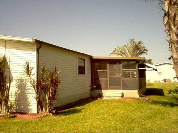 This Homes of Merit (1,440 sq.ft not including raised side screened room) sited on Pam Breezes Drive is being marketed with ALL FURNISHINGS INCLUDEDFront living room(could be your study or office- with built in bookcases) replete with furniture, a formal dining room set and hutch, and then we are in the eat-in kitchen area. Regular height counter cooktop and seating amidst the many cabinets, oven, grill top, dishwasher and pantry with dual doors. The second living room set (with TV) also has a WET BAR for entertaining .Just a few steps away, through the french doors is your raised SCREENED porch with patio furniture and also, metal hurricane shutters, and even a mini refrigerator The master bedroom (with King sized bedroom set)takes up the whole end portion of the home and also has dual doors into your bathroom(twin sinks) ,soaking tub, and private entry to your commode and dual shower. There is a large closet herein also.The spare room also has a KING SIZED BED and furnishings.Through this bedroom is another full bathroom ,which also has another door into the hallway across from the washer/dryer area. There is a hall door to the second egress , which leads to your covered carport area and shed. Just pass this is a private patio area with concrete pavers for your barbecues or basking pleasures. This home has a new roof 5 years ago and various other upgrades. Palm Breezes Club is a 55+ GATED community and part of the renown Cal-Am Homes and Properties family. Please call Laura Jean- the mobile home Queen for your personalized showing by calling (561) 398-0568. Thank you for looking and we look forward to hearing from you