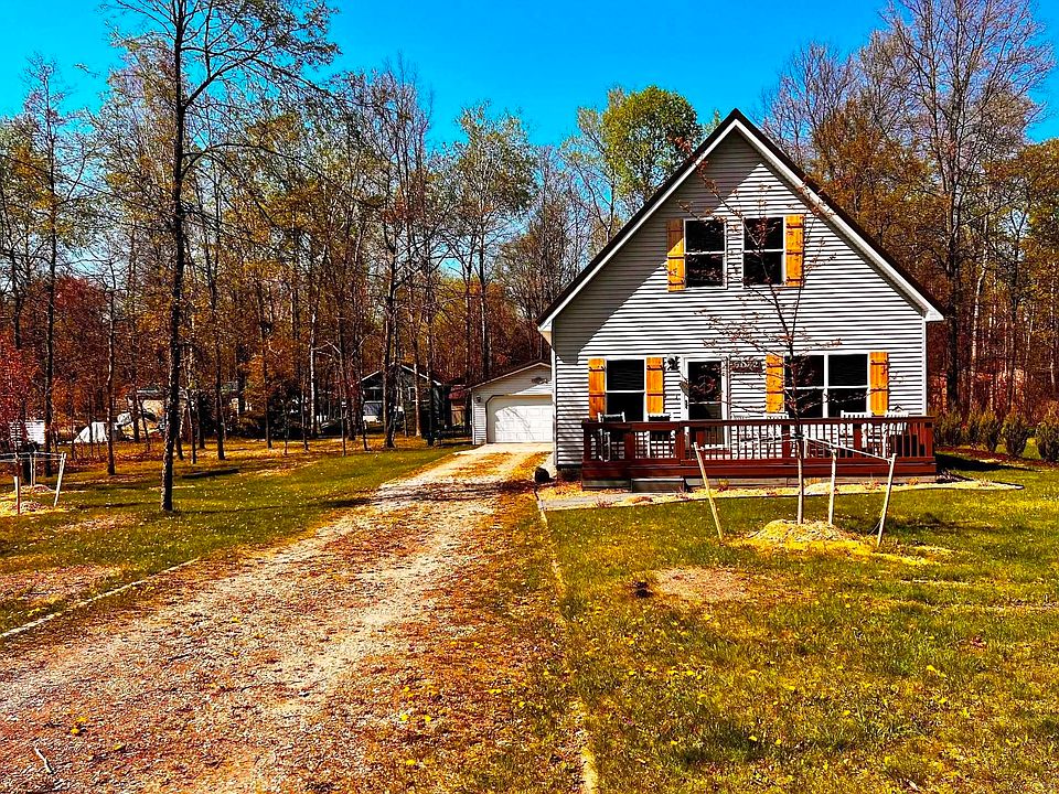 Enjoy the north and all the amenities Lake of the Pines has to offer including access to fish-filled Doc & Tom Lake, clubhouse, rental cabins for guests, inground pool, camping area, hunting land, work out room and pontoon island. This 3 bedroom chalet style home was built in 2005 and has been maintained with love. New metal roof (2020) will last a lifetime. 20x28 detached garage with concrete approach, outdoor firepit and maintenance free decks on back of the home allow for comfortable enjoyment of the fresh northern air. The main level of the home has open living spaces, large bedroom, full bath and laundry room with luxury vinyl plank flooring. Upper level has two bedrooms, large storage closet, and a full bath plus tons of storage behind the half walls.. Natural Gas furnace and central air too. There is a Nest thermostat and U Tech electronic entry, 220 V power and a sub panel in the garage. Seller has a great sense of style and is making available, on separate bill of sale, many of the furnishings, decor and kitchen items.