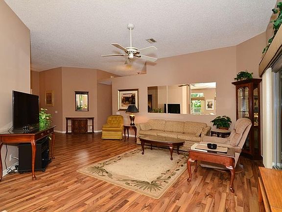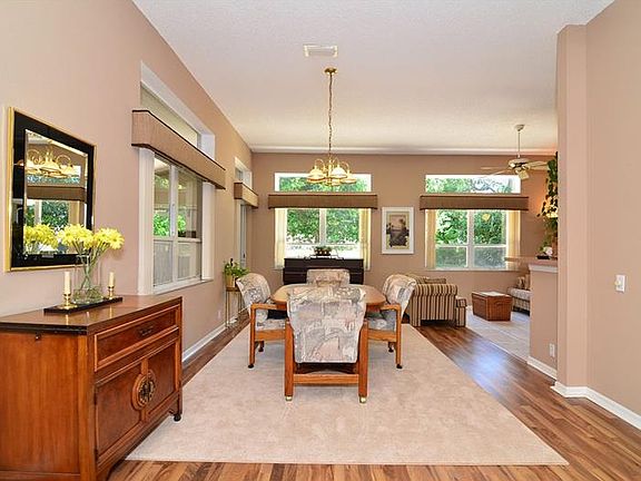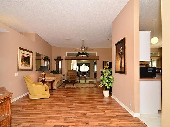 Stunning 3 bedrooms/2.5 bath, OVERSIZED 2 garage, 1825 heated square feet with an enclosed Florida room spanning the entire width of the home !! This Adorable home is located on over a quarter of acre in the quaint subdivision of Skyland Pines. This home boast appointments including a double entry door into the gorgeous foyer opening to the stunning family room with hardwood laminate flooring, neutral paint, plant shelves, transom windows and triple sliders, kitchen with breakfast bar, 15x15 ceramic flooring, faux backsplash, recess and pendant lighting and a spacious pantry, breakfast area w/panoramic views and custom valances, formal dining area w/hardwood laminate flooring, large windows and double sliders leading to the immense Florida room overlooking the lusciously landscaped conservation parcel and the elevated garden relaxation area w/swing, light and airy master bedroom w/sitting area w/brand new plush carpeting, cathredral ceilings and vast walk in closet, master bath w/double sinks, stand up shower, faux painting and plant shelving, guest bedrooms w/new carpeting, double closets and custom paint, guest bath w/garden tub, hurricane shutters, water softener, well for sprinkler system, landscape lighting, garage with workshop, almost new compressor and air handler (2014) and more!