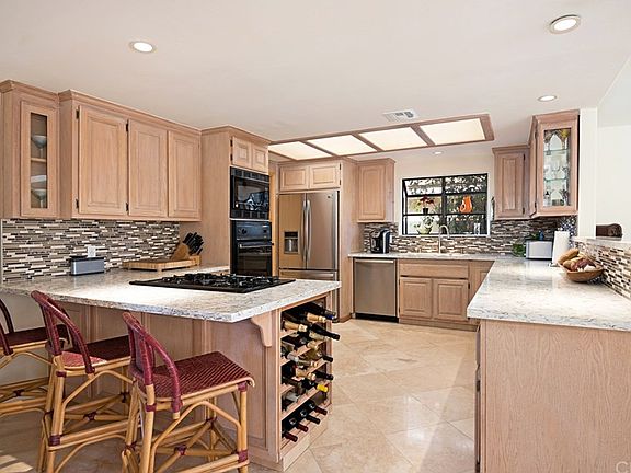 This home will literally take your breathe away! Gorgeous single story Prestige home with a family room addition, very open floor plan and tons of quality upgrades including; kitchen w/updated cabinets, brand new quartz countertops & tile backsplash, stainless steel sink & dishwasher, built-in microwave & wine rack, garden window, living room w/travertine facade fireplace, elegant dining area w/great room effect, family room w/high beamed ceiling & view of the fountain, built-in entertainment system & walnut floor, hall bath with newly tiled shower, granite counter & ceramic wood finish floor tiles, new master bath w/double sink, quartz counter, walk-in travertine shower & mosaic tiled floor, newly polished travertine floors in entry, kitchen, living room & dining room, walnut floors in bed's, closet organizers in master bed., all new interior doors, recessed lighting, bullnozed corners, smooth ceilings, 3 skylights, whole house fan, newer water heater, new vinyl sliders, finished garage w/epoxy floor, new exterior paint, beautiful spanish tile roof, relaxing spa & wall fountain w/brick & tile trim as well as a sunny South facing rear patio, all accented by plastered block walls and a tropical landscaping front & rear making this home one of a kind!!! This fabulous home is also walking distance to award winning schools, a park, golf, shopping, restaurants and is only a few minutes from the beach or the Bella Terra Mall!