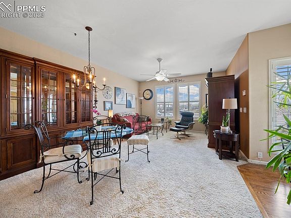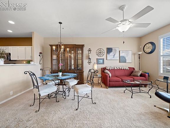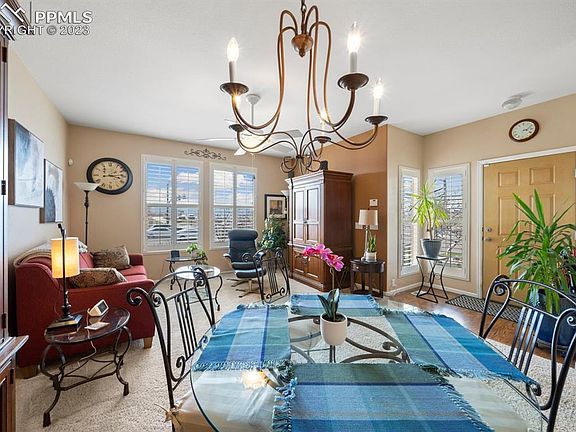 Welcome to this charming 2 bed, 2.5 bath townhouse! This stunning property boasts breathtaking views of Pikes Peak, one of the most iconic landmarks in Colorado. As you step inside, you'll be greeted by a spacious living area that features large windows that allow natural light to flow in, highlighting the picturesque mountain views. The open-concept design seamlessly connects the living area to the dining space and the modern kitchen with new appliances and solid countertops, perfect for entertaining family and friends. Upstairs, you'll find two generously sized bedrooms, each with its own ensuite bathroom, offering a private retreat for you and your guests. The upstairs bedroom boasts an impressive Pikes Peak view, creating a serene atmosphere to relax and unwind after a long day. This townhouse also features a cozy outdoor patio where you can enjoy your morning coffee while taking in the stunning scenery around you. Other notable features include a two-car garage, plenty of storage space, and easy access to nearby shops, restaurants, and outdoor recreational activities. Don't miss this rare opportunity to own a beautiful townhouse with Pikes Peak view in one of Colorado Springs' most sought-after neighborhoods. Schedule your showing today!