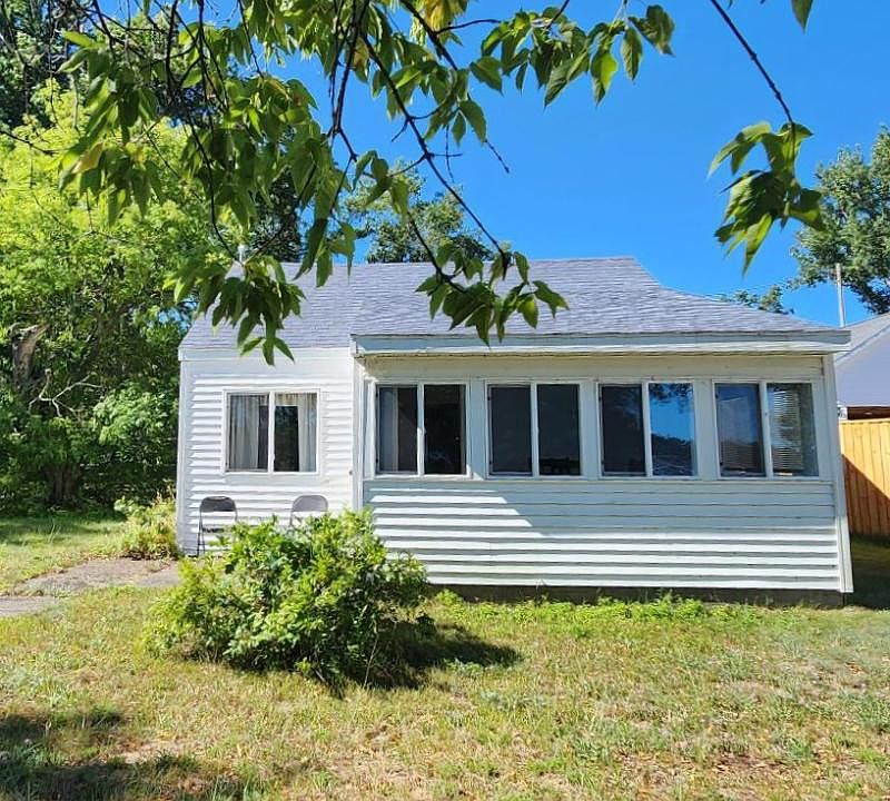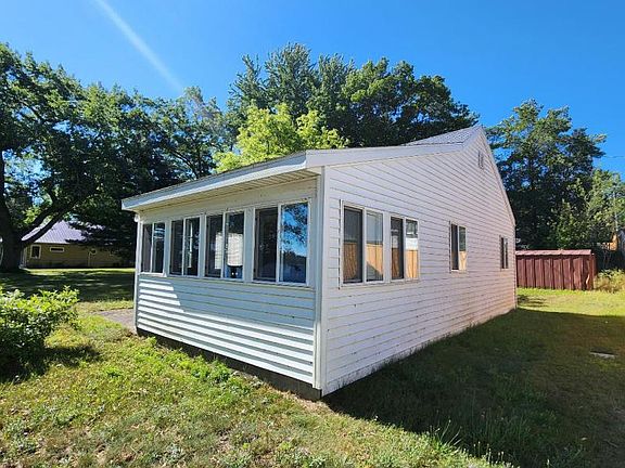 VAN ETTEN LAKEFRONT 3 SEASONS COTTAGE - This delightful, updated cottage offers a bright, light-filled interior with sleeping for 6 on the included 2 double beds plus living room queen sleeper sofa. Newer vinyl windows, newer steel entry doors, and storm/screen doors let in plenty of light and lake breezes to all rooms. Convenient galley kitchen has plenty of storage and includes dishes, pots/pans, everything! A vintage clawfoot tub in the charming bathroom is in great condition. The 8x14 Lakeside dining/game room offers 7 large windows and a door out to the side patio and lake. On the cottage exterior you will find easy care vinyl siding and soffits, and a newer roof. An aluminum fishing boat and roll-in dock come with the property, as well as contents of 3 storage sheds. The deep lot may offer possibility of adding onto the current structure. The 52' waterfront features a cutout with sandy bottom for launching the boat or your other water toys. Come celebrate Labor Day at your new Up North Lakefront Getaway!