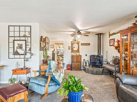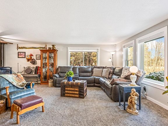 This upgraded single-level home features a newer 30-year roof, new Anderson windows, quartz countertops, updated LVP and carpet, and a spacious covered patio with a hot tub. The property includes a shop with a pit, 20' Conex container with lights, 2 large RV Covers with power, chicken coop, and a barn with 2 stalls, hay storage, and a concrete-floored bay. Equipped with a security system and 200-amp service to both the house and shop. Located within the Urban Growth Boundary and UA zoning, offering numerous permitted uses—ideal for developers or those seeking future growth potential.