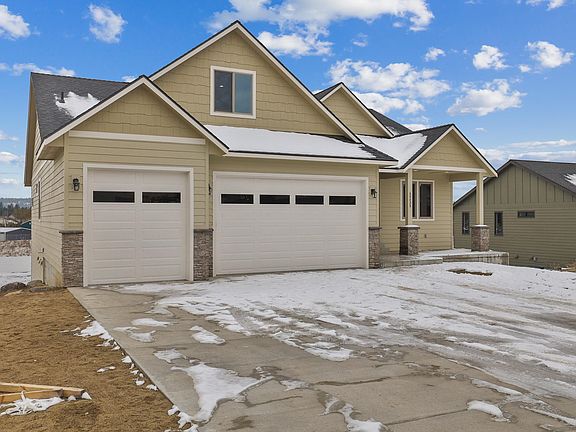 This Beautiful open concept Craftsman home with Cathedral ceilings and 9ft ceilings throughout. Granite counters, kitchen island with sink, gas stove. 3 bedroom with additional office/bedroom, 2 bath. Double sink and soaking tub in the primary with large walk-in closet. 2090 finished s/f with additional 1677 s/f unfinished walk-out daylight basement. Basement has all electrical & all exterior wall framing complete, RI Plumbing for 3rd bathroom. Large 3 car garage on .53 acre. Great School District.The wonderful Lakeside community has all the amenities you would need, yet Spokane is only a 15 min drive away! Long Lake is 26 miles long and has great fishing. This home is close to several boat launches, hiking and biking trails. Seller offering a 13 month Home Warranty!
