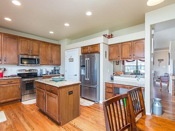 - Eating Space / Kitchen, Five Piece Bath, Kitchen Island, Master Bath, Master Suite, Window Coverings, Pantry
