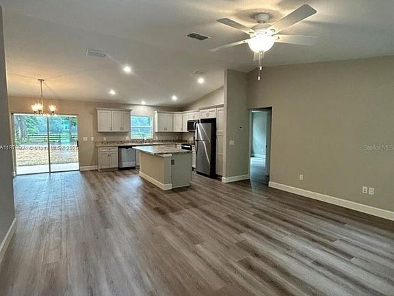 Brand-new 2024 build in Ocala: 3BR/2BA with 2-car garage and rear terrace/patio. Open-concept kitchen to spacious living/dining; laminate flooring in main areas. Split bedroom plan with generous rooms and closets. Extremely large backyard ideal for outdoor living. New systems including water heater. Fresh, move-in ready, easy to show. Available starting October 18, 2025.