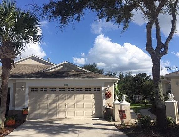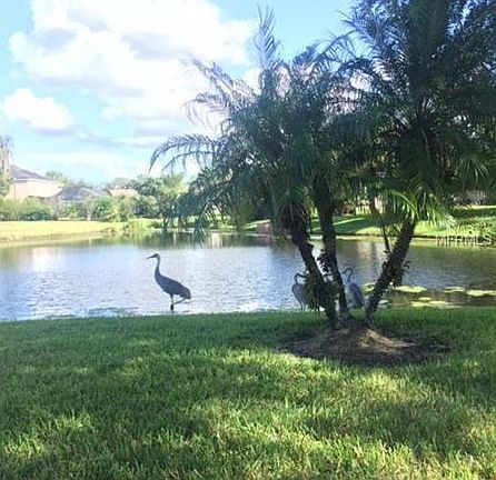 A rare find in FishHawk Ranch. This 1,828 square foot maintenance-free villa in the gated community of Sandhill Ridge sits on a cul-de-sac and backs up to a pond. Spend your morning relaxing on the large lanai as you watch the sandhill cranes meander by and drinking in the serenity of nature. Inside, the master bedroom features a tray ceiling with crown molding and extended sitting area. The master bath includes a jetted tub great for soaking, a separate shower stall, double sinks and his and her closets. Sliders from the master bedroom lead straight onto the lanai, where there is a privacy screen between you and your neighbor and a surround sound speaker port so you can listen to music. Crown molding in the living room adds a custom touch. Two-inch faux wood blinds throughout provide shade and privacy. All windows and sliders are factory tinted. Garage cabinetry will help you organize or is a great place to store tools and equipment. It is also plumbed for a laundry sink.