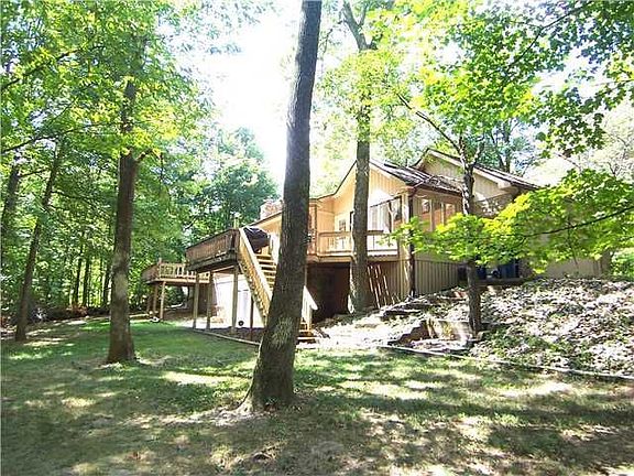 Wonderful rustic ranch home w/walkout basement that includes all new carpet and hardwood floors. (2017) Lower level consists of a large family room with double sided stone fire place, full bath and 2-3 bedrooms- (3rd bedroom has walk in closet - is used at a weight-room,) laundry room and two additional storage closets. New roof 2007, Main level has large great Rm w/huge stone fireplace, vaulted ceiling & wall of windows overlooking woods and small creek. Completely remodeled kitchen (2017) includes custom cabinets, granite counter tops and stainless steel appliances, (refrigerator, double oven, dishwasher) skylights & opens to Sunroom/Breakfast Rm & upper deck. Master BDRM has tray ceiling and its own private deck. Newly remodeled master en-suite (2017) features extra long custom double vanity, jetted tub, separate walk-in custom shower, huge his and hers WIC. Main level includes dinning room, guest bath and an additional bedroom. Lot is approximately 1/2 acre with mature trees. Great home in wonderful neighborhood!