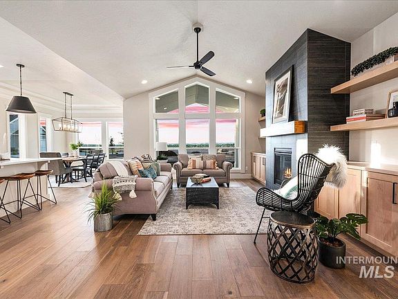 Luxury living in Eagle, Idaho...you'll love the "Ventura Bonus RV" by Todd Campbell Custom Homes. With custom finishes inside including professional series Wolf® appliances: 36" gas range, double ovens, microwave, + SubZero® fridge + Asko dishwasher. Main level living with spectacular cathedral style windows to take in the views, & bonus + full bath upstairs make a great guest suite. The Idaho-sized garage includes a 47 Ft RV Bay with 14 ft door, + fully insulated with epoxy flooring. The primary suite is tucked away from all the rooms and truly feels like a private oasis. The ensuite bathroom features a luxurious soaker tub, dual lavs and walk-in tiled shower. Generous secondary bedrooms with ample closet space and huge bright windows that are fully wood wrapped. Gorgeous crown molding detail throughout, extensive millwork, and custom mud-area elevate the entire feel of this special home. This gem comes fully landscaped and move-in ready! You'll fall in *PHOTOS SIMILAR TO SHOW BUILDER FLOOR PLAN & QUALITY.*