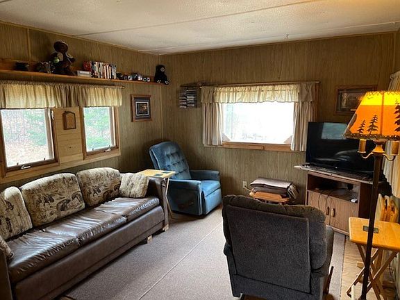 Year round 2 bedroom mobile home on Racine Community Beach with access to Lac Vieux Desert. The mobile home features: Tongue and Groove ceilings in the kitchen, both bedrooms, hallway and bathroom. There is a large entry room off the living room which is used for a third bedroom. There is central air, natural gas, a pitched metal roof and the home comes furnished. Additional buildings include a 20' x 27' metal garage with 2 access doors; electric is in. And 2 storage sheds and a pump/fish cleaning shed. Here's your opportunity for a perfect getaway up north adventure; go fishing, snowmobiling, hiking, paddling, biking or just read a good book.
