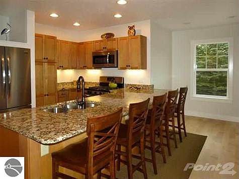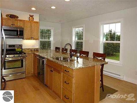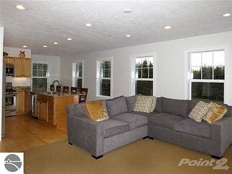 NEW CONSTRUCTION, very private 2.5 acres but with easy access and less than 4 miles to Crystal Mountain. Walk to Betsie River public access or the Betsie Valley Trail, endless recreational opportunities out your front door. Cement board & cedar siding, Pella windows, granite countertops in kitchen & upper bath, maple floors & cabinetry. Easy options for adding 3rd bedroom & living space. Frigidaire Gallery appliances included. Chimney for wood/pellet stove. Your getaway or full-time residence. Brokered And Advertised By: CRYSTAL MOUNTAIN REALTY Listing Agent: Karyn Thorr