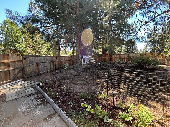 Located in SW Bend, this private .39-acre property is one not to miss. With a park-like setting, this yard has a garden, chicken coop, two sheds, outdoor pizza oven, numerous fruit trees and plenty of room for your furry friends. There is also room for your RV, boat, or whatever toys you may have. This 3 bed/3 bath home has tons of outdoor space for entertaining including a spacious deck off the kitchen. The open floor plan downstairs included hardwood floors throughout and a custom juniper bar top on the kitchen island. The spacious primary suite is located upstairs with a large walk-in closet and enjoy sipping coffee on the wrap around porch. The 3-car garage has a ton of storage, 220-volt outlet and RV outlet and in addition a designated work out and office space. New roof in 2021 and exterior of the house was painted 6 months ago.