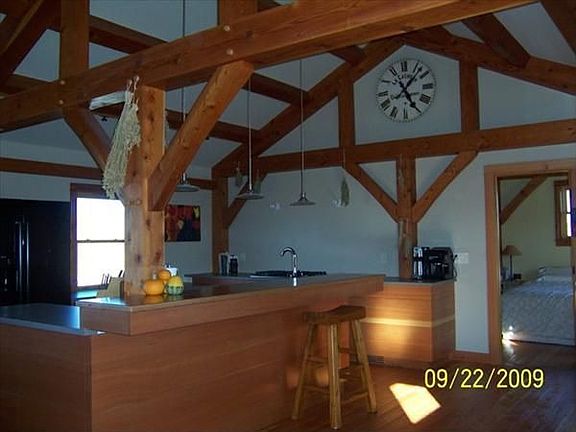 This timber frame home is open and spacious with custom cabinets and wood work thoughout. Radiant hot water floor heat, SIP insulated walls, metal roof, air exchanger system and main floor laundry with half bath. The property is fully fenced with a garden area, storage shed and detached heated shop that has room for several vehicles.