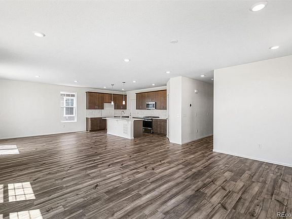 This lovely two-story home features and open floor plan with 9ft ceilings and a spacious great room and kitchen. The kitchen has an over-sized island for extra seating, features 42-in upgraded Timberlake cabinets in Latte and White quartz counter tops, GE stainless steel appliances including a gas range, dishwasher and microwave. The spacious primary suite boasts 2 walk-in closets and the bath showcases a dual vanity sink and large seated shower with the decorative tile. The main living space, bathrooms, kitchen and laundry room have upgraded low-maintenance plank flooring. The extended two car garage and full unfinished basement will give ample space for storage. Relax outdoors and share some family time in the private backyard. The Listing Team represents builder/seller as a Transaction Broker.