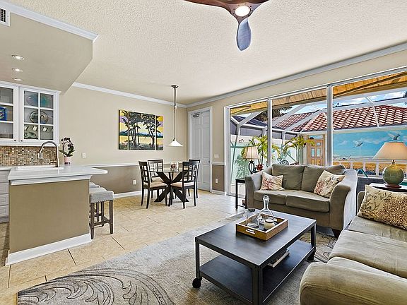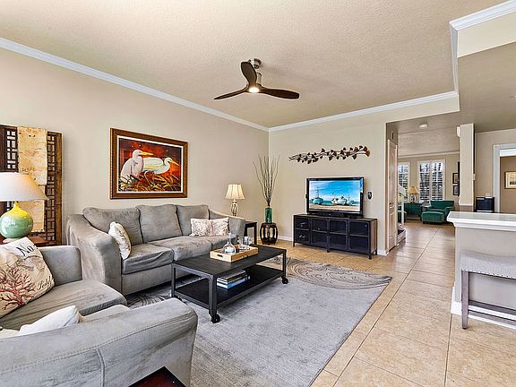Beautifully maintained and upgraded Aruba Townhouse in the award winning gated community of Islandwalk. New roof, A/C, pool pump and pool screen. Brazilian Cherry hardwood flooring upstairs, upgraded tile floors and crown molding downstairs. Upgraded kitchen and kitchen lighting. Lovely enclosed liana with pool. Long lake views in front for fabulous sunsets. Large 2 car garage with cabinets and work spaces. The nearby Towncenter boasts heated resort and lap pools, gym, nail salon, beauty salon, restaurant, post office, gas pumps and carwash, tennis and pickleball courts, bocce ball courts and putting green