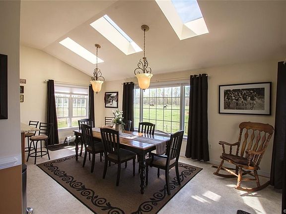 Turn Key Equestrian Dream Farm! Barn designed and built by Steve Meadows. Center aisle with 4 stalls, wash stall with hot water, insulated tack room with sink and walk-up hay loft. Wired for generator. 120' x 60' riding arena. 90% of the 10.46 acres are pastures, all interconnected by gates and electric fencing. Watch your horses from any window in the house! First and second floor masters, HUGE closets in all bedrooms and 2 utility rooms (B & 2nd floor). Full finished basement, full bath and walk-out to the oversized 2 car garage or patio. First floor has formal living, dining room and large family room with hardwood floors, master bedroom with en-suite bath with double vanities, jetted tub and separate shower. Kitchen has granite countertops, 47" cabinets and stainless-steel appliances. Oversized eat-in area is bright and spacious with 3 skylights. Main floor also has a deck and gas fireplace. Second floor has a loft area, great for an office or play area, 3 additional bedrooms and 2 full baths, one Jack & Jill. Walk-up to the extensive 3rd floor storage area that could be finished off. House also wired for a portable generator.