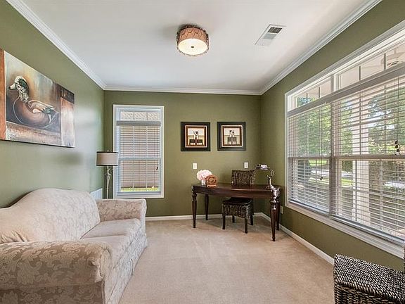 Charming craftsman facing a large courtyard space with separate detached in-law suite and full bath above the garage. Enjoy this well appointed home, ready for you to move right in! Covered front porch where you can enjoy the crisp fall air. This home offers many light-filled spaces sure to wow your guests! Family room with fireside warmth and designer lighting that will catch your eye. Main level offers a home office, family room, kitchen with eat-in space, and a separate formal dining space. The owner's suite is a peaceful retreat with calming paint, double tray ceiling with a show-stopping fan with hidden blades, bath with separate vanities, stand-up shower, soaking tub, and ELFA custom walk-in closet. Two additional guest suites with private bath and large walk-in closets! This house keeps going with an upper level bonus room or den with attic storage. Don't forget the separate guest space or home office with full bath above the two car garage! Private backyard and a level lot. Amenities also include clubhouse, playground, pool, lighted tennis courts, nature trails and 4 lakes.