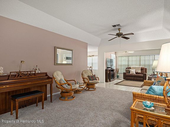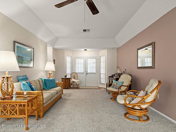Charming 2-Bed, 2-Bath End-unit Villa in Timber Pines! Welcoming covered entry. Spacious and Versatile Living Area with vaulted ceiling graced with access to the open rear porch. A stunning and modern kitchen awaits you, equipped with stainless steel appliances, sleek stone countertops, ample pantry, and breakfast nook with large window for a wonderful view. Master Bedroom features massive walk-in closet and ensuite bath complete with large single vanity and tub/shower combo. Split bedroom plan. Ample sized Guest Bedroom with its own walk-in closet and guest bath. Linen closet provides extra storage. 1-Car garage has plenty of room for a car and golfcart. Timber Pines is an award-winning Gated 55+ Active Adult Golfing Community with THREE 18-hole golf courses, 9 hole pitch & putt, 2 pools & hot tubs. Country Club with newly remodeled lounge and restaurant. 2 Pro Shops, Fitness Center, Billiard Room, Performing Arts Center, Pickle Ball, Tennis, Dog Park, and over 100 clubs and activities. Make your showing appointment today, this one won't last long!