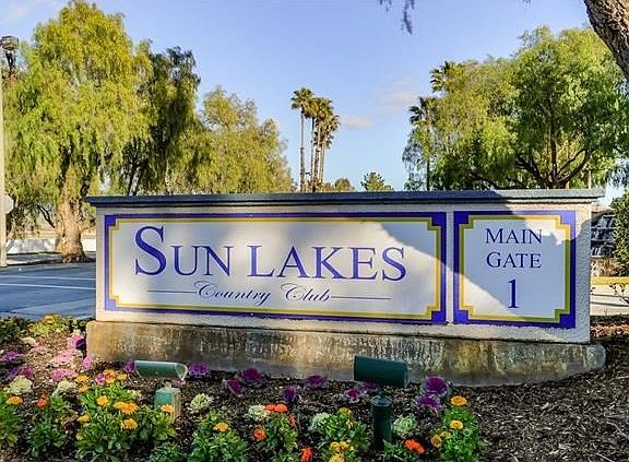 Welcome to Sun Lakes Country Club !!! READY TO RETIRE? Well here it is!!! Awesome Home With 3 bedrooms and 2 bathrooms! Boasting a beautiful Court yard entry with a wonderful side and back yard for entertaining. Kitchen with updated cabinets. Tile floors, vaulted ceilings, Living room with cozy fireplace and french doors leading to the back Yard! Awesome Skylight for extra lighting. Garage offers lots of cabinets for storage and custom Epoxy floor. Back yard also has rose trees and fruit trees and Sega palms fully landscaped . Alum wood patio cover. Multiple Club houses Multiple pools to choose from