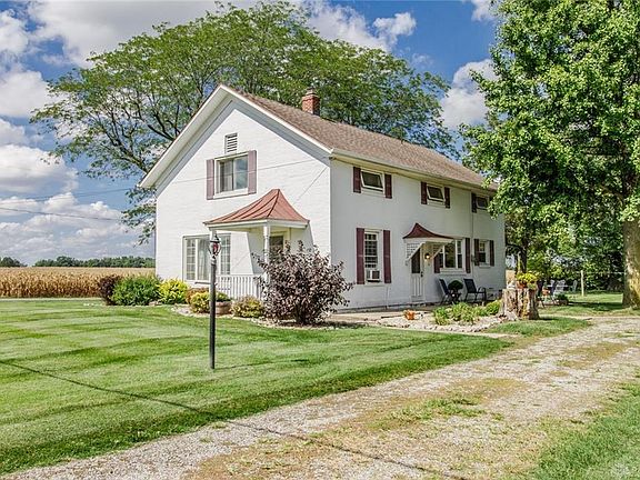Brimming with charm, this 6-7 bed/2 full bath home sits on a country corner 1-acre lot & features a barn/detached garage! Once a 3-room schoolhouse, this property was renovated in the 1940s to create an incredibly delightful home w/ timeless hardwood floors, built-in cabinetry, & quaint details. The main floor includes a light-filled front living room, spacious kitchen boasting plentiful cabinets/counters, cozy den/tv room, first-floor bedroom, & full bath. Well-designed second-floor layout boasts a surprising full bath & 5 bedrooms, including a massive master suite w/ double closets. A full unfinished basement allows for additional storage space. With no immediate neighbors to the back or side, this country lot is surrounded by farm ground. Mature trees create excellent shade. The barn features a loft, storage room, & concrete floors. Well-maintained & loved by the same family for the past 52 years, you will feel at home immediately. Seller will consider allowance for a/c and heat