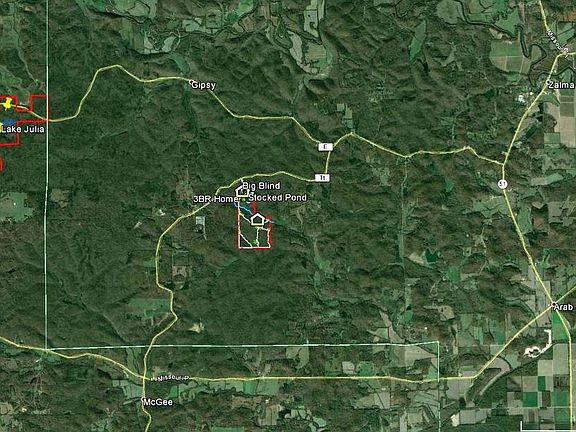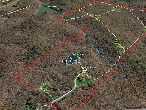 253 +/- acre retreat for sale in Bollinger County, Missouri. Tall Tines Ranch is an exceptional recreational tract nestled within the hidden Ozark landscape. Tidy 3 bd, 2 bath mobile situated neatly above the 2+/- acre fully stocked pond absolutely loaded with catfish and other species. Can be enjoyed from the newly constructed 42 ft screened porch. Exceptional road infrastructure through both interior and perimeter make access on nearly a dozen improved food plots a total pleasure. Custom deer blinds.