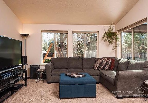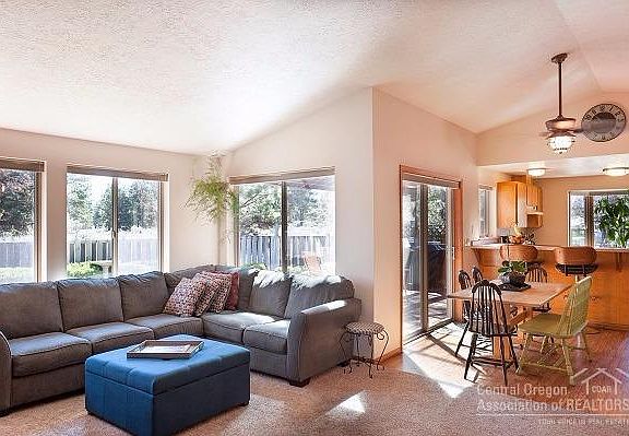 Hard to find single level ranch style home on .43 acres in the City of Bend. Three bedroom, 2 bath with large open living space. New and large windows look to private fenced back yard and newly stained covered patio. Two additional large side yards one landscaped, attached garage, extensive paved parking, RV parking, endless room for toys and storage.