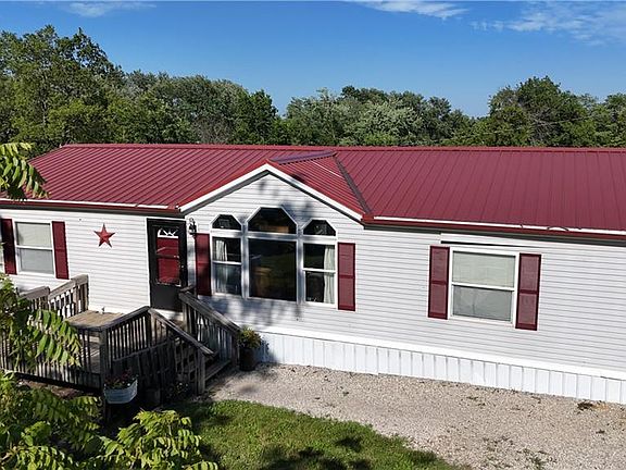 Country roads....take me home! Welcome to this cozy country home nestled on nearly 5 acres in Andrew County. This 3 bed, 2 bath gem has been partially updated, including recently added metal roof, to offer the perfect blend of modern amenities and rustic charm. The open concept layout with kitchen, living and dining rooms maximizes spaces as plenty of natural light exudes in. You'll love the farmhouse kitchen updated with custom countertops, painted cabinets and a farm sink. The property offers 2 garages and multiple outbuildings for plenty of storage. For these hot summer days, cool off in the pool and relax on the deck. This property offers the perfect escape from the hustle and bustle, while still being conveniently located. Don't miss the chance to make this country retreat your own! Schedule a showing today!