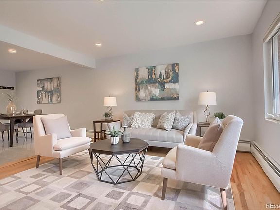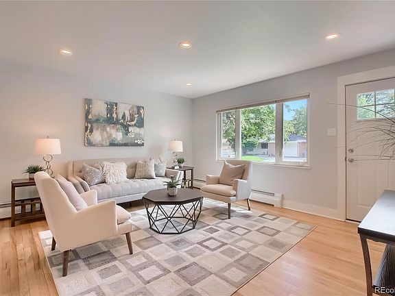 A Modern Ranch Style Home in the Alte Vista neighborhood Located Minutes From Olde Town Arvada. This corner lot home features 5 bedrooms, 3 baths with lots of upgrades and updates throughout. Original refinished wood flooring greets you as you enter this beautiful home. Features include recessed lighting, hydronic baseboard heaters, and modern updates to help create a warm ambiance. Enjoy cooking and entertaining in the spacious kitchen boasting stainless steel appliances, 42" upper cabinets, soft close drawers, LED under cabinet lighting, granite countertops, and granite tile flooring and a toe kick heater. LED dimmable lighting throughout home. Blackout shades in master bedroom. New carpet (2019), specialty wired for surround sound, sound proofing insulation in basement ceiling, walk-in closet with shelving, laundry room, well designed bedrooms, and bath compliment the finished basement. 50 gal water heater (2017), New shed, sprinkler system, and sod. New roof (2018). Located 5 minutes from Historic Olde Town Arvada's unique shops, pubs, restaurants, and theater. An abundance of parks and trails, the light rail station, schools and Apex Recreation Center with pool all just minutes away.